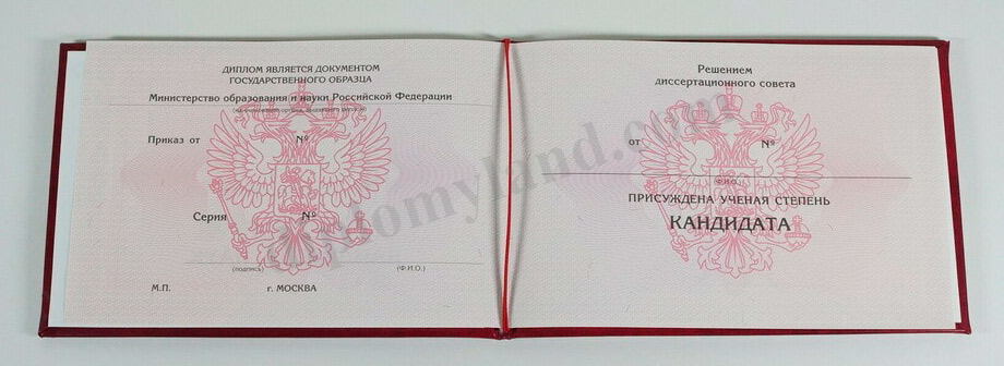 Оба варианта диплома кандидата наук будут отпечатаны на бумаге предприятия Гознак. В них в обязательном порядке будут проставлены нужные печати и подписи, а также регистрационный номер. Документ с верификацией выдержит любые проверки и позволит устроиться на работу даже в других странах.